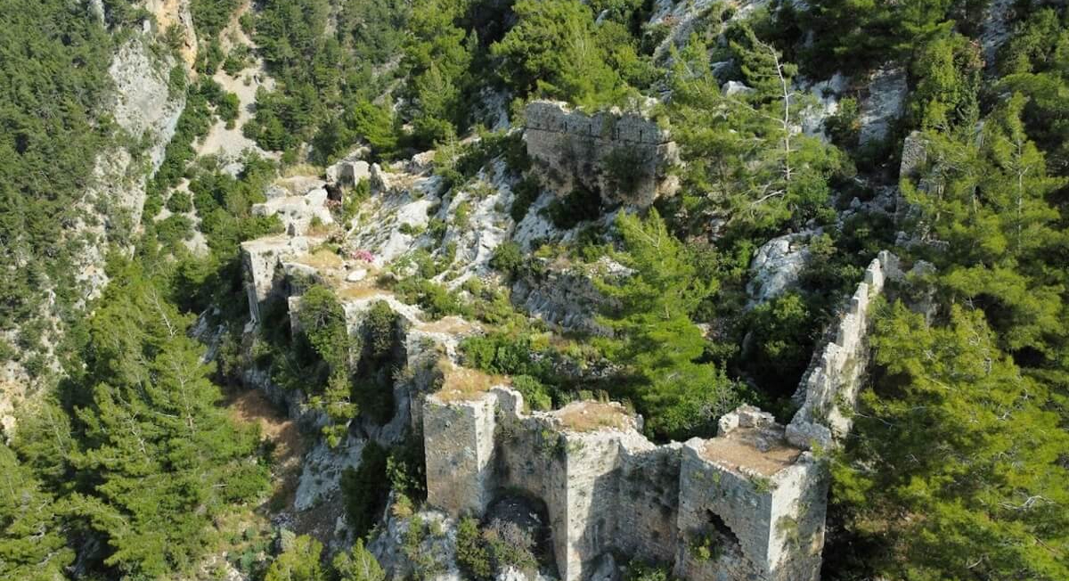 Approximately 37 km west of Alanya, situated atop a steep hill on the east bank of the Alara River.